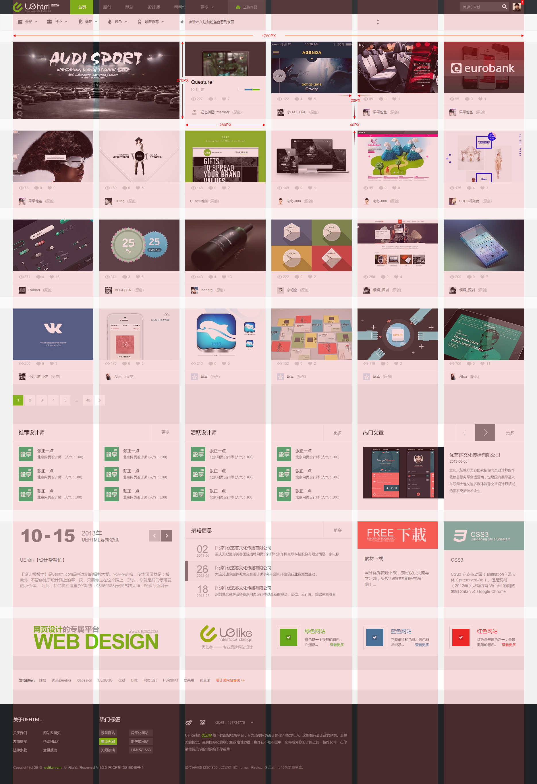 对于网页设计师来说,栅格系统的使用,能让网页信息呈现的更加美观,更加易读,亦更具可用性。而对于前端开发来说,网页也将更加的灵活与规范。 那是否每个网站都要符合栅格化系统的标准呢?栅格化会不会导致设计师的思路被框架死死限制住?尤其是企业站的设计。这是一个值得大家拿上台面来思索探讨的问题。UEHTML平台在进行网站设计的时候是没有参照栅格化系统的,只是在设计过程中做了很多细节的规范,这样建站,是不是更具灵性呢?....