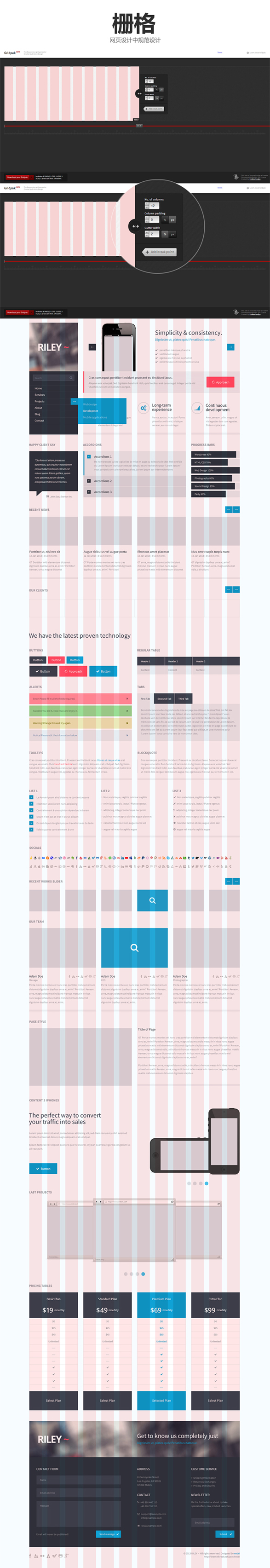 对于网页设计师来说,栅格系统的使用,能让网页信息呈现的更加美观,更加易读,亦更具可用性。而对于前端开发来说,网页也将更加的灵活与规范。 那是否每个网站都要符合栅格化系统的标准呢?栅格化会不会导致设计师的思路被框架死死限制住?尤其是企业站的设计。这是一个值得大家拿上台面来思索探讨的问题。UEHTML平台在进行网站设计的时候是没有参照栅格化系统的,只是在设计过程中做了很多细节的规范,这样建站,是不是更具灵性呢?....